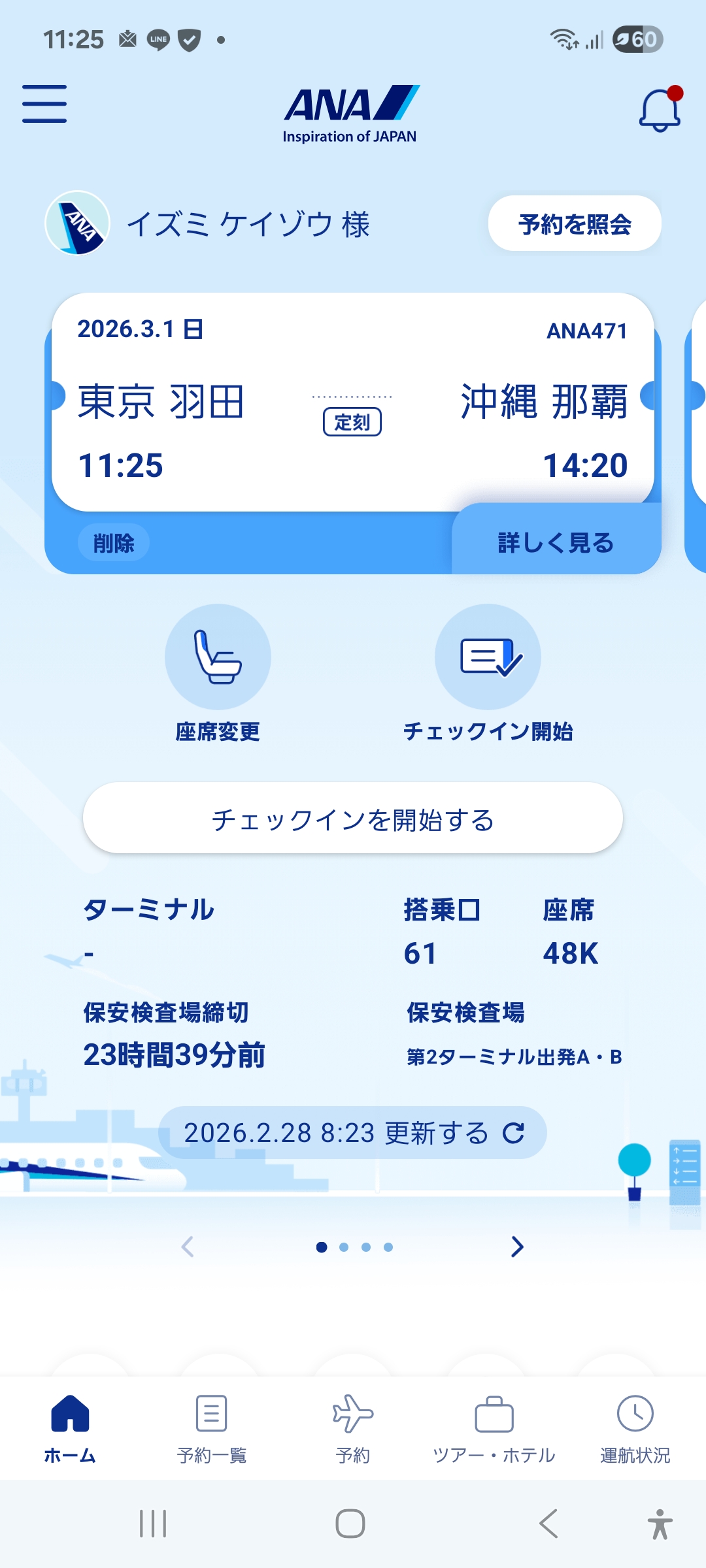 チェックインを済ませ、