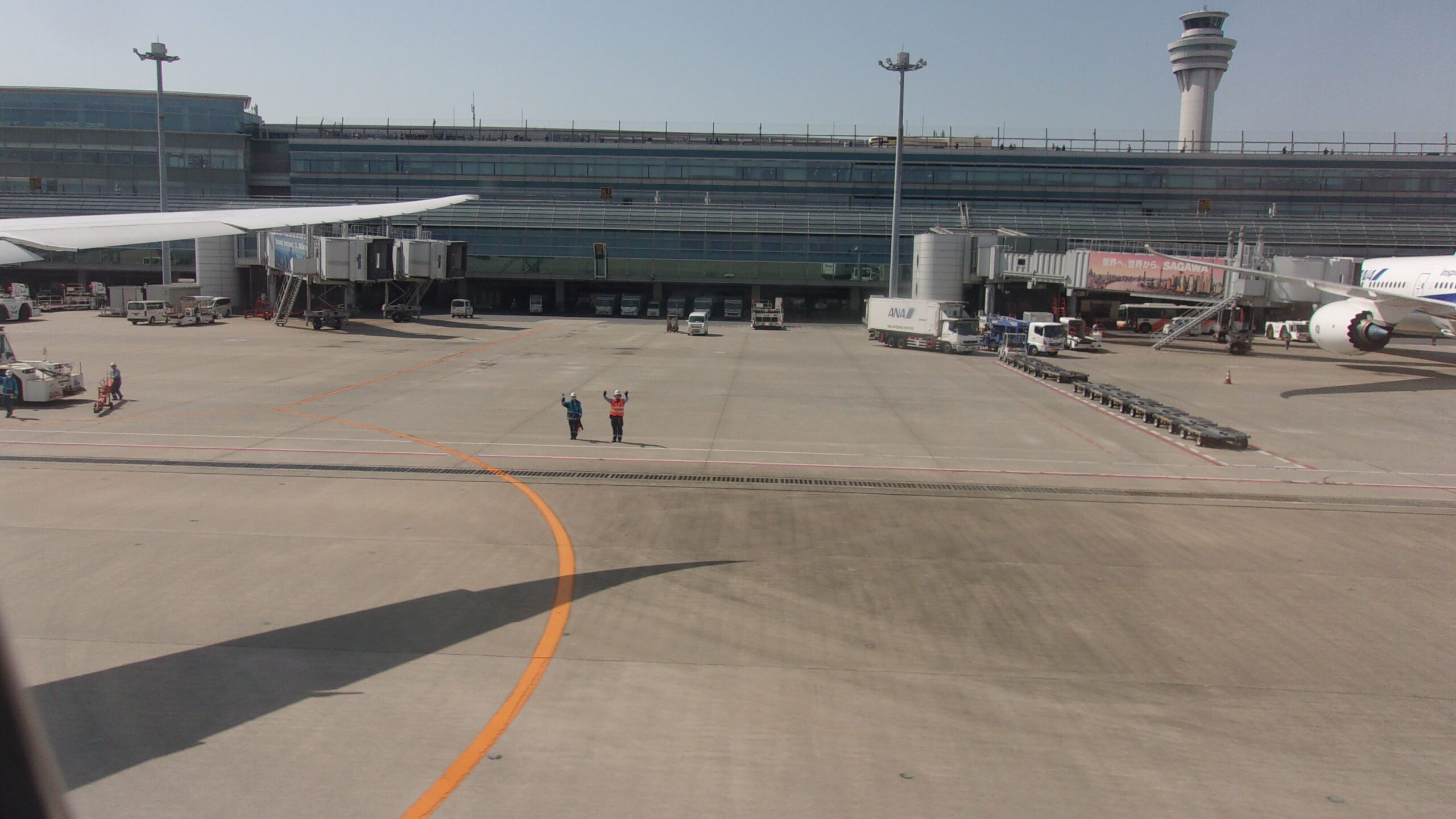 地上スタッフの皆さんも手を振ってくれています。