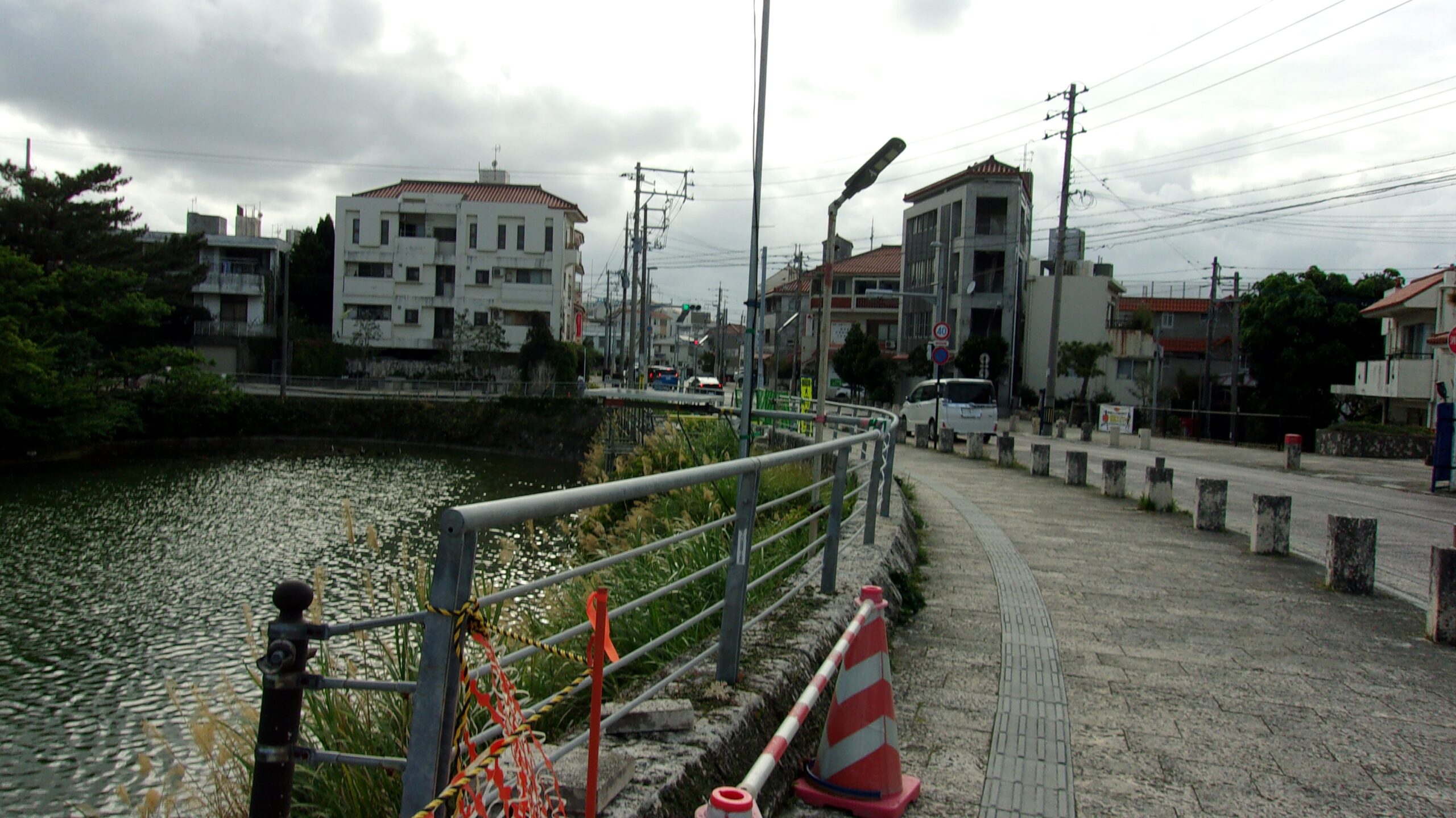 池を周り込むように。左折した後、