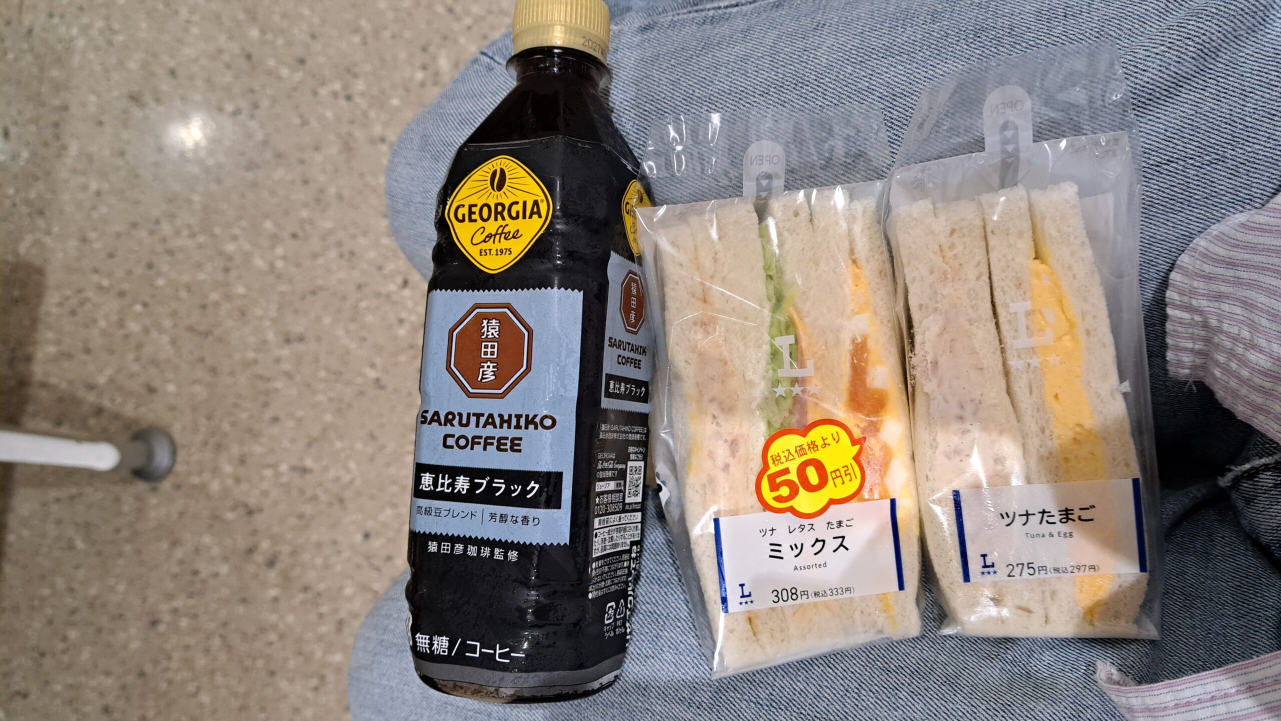 コンビニで購入したサンドイッチで夕食にいたしました。