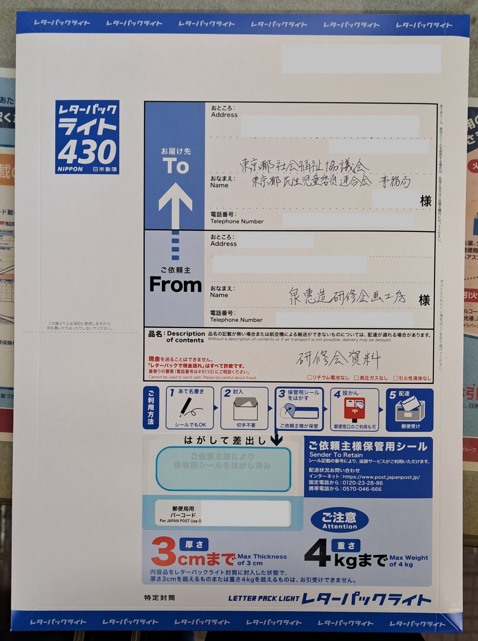 紙媒体については、レターパックに封入のうえ、