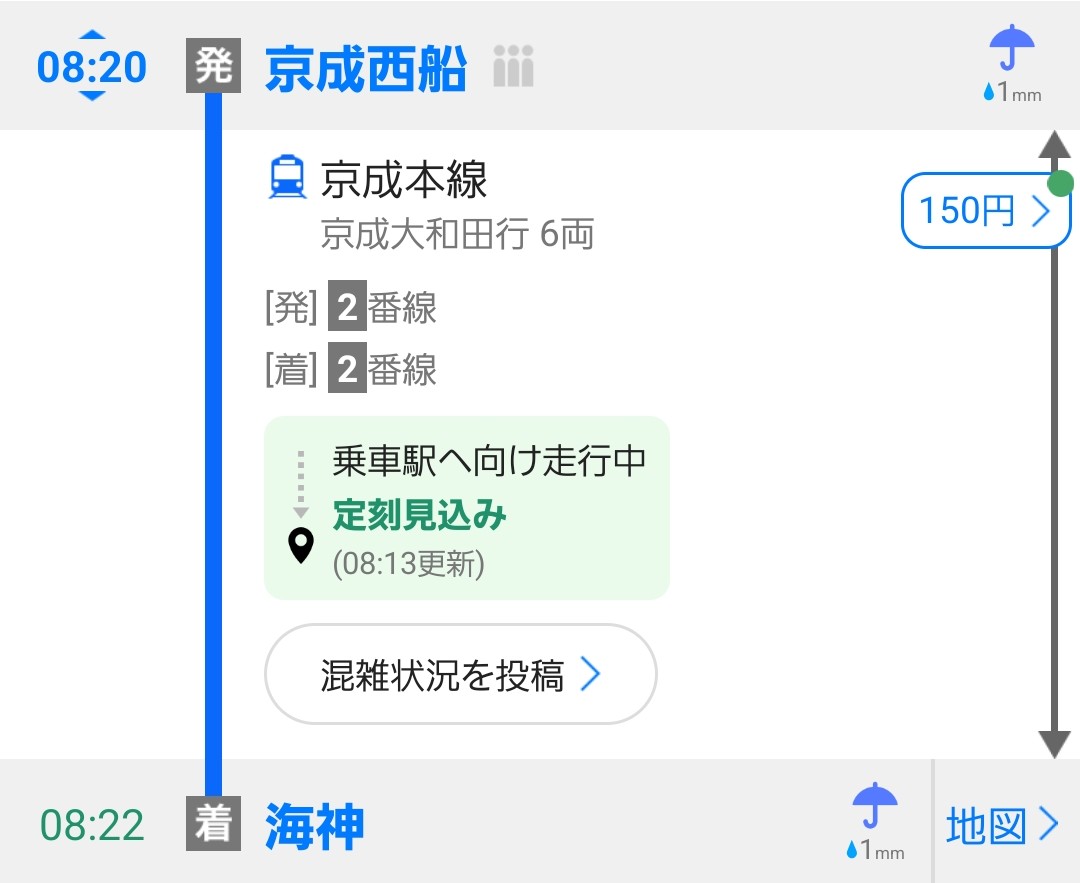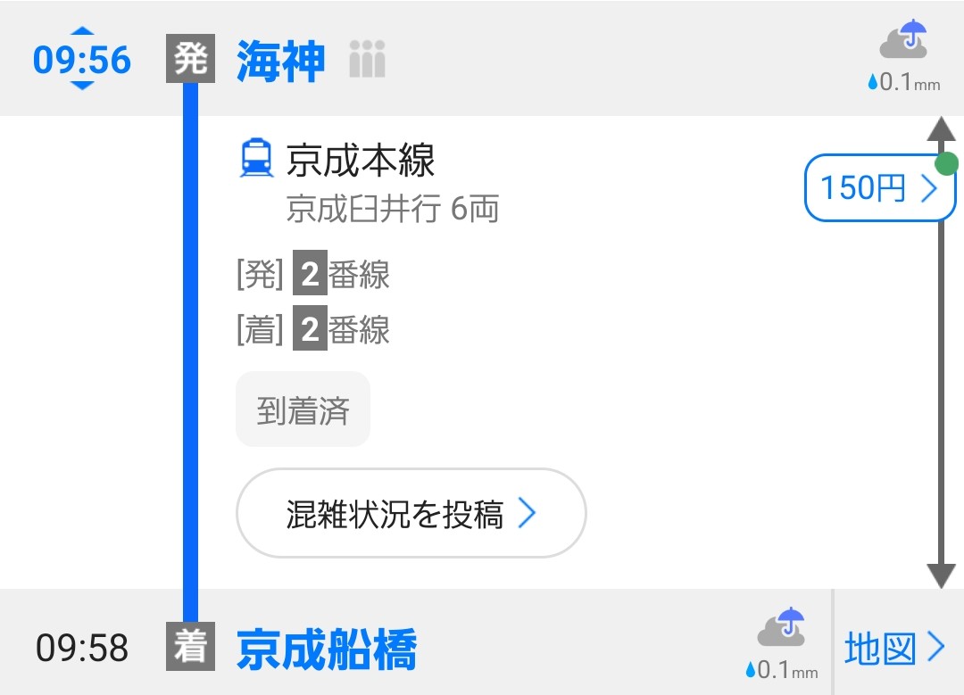 復路は逆方向の「京成船橋駅」に向かいました。